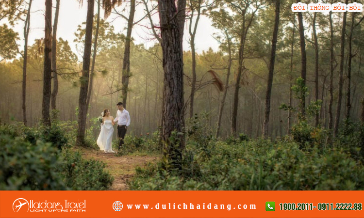 Khung cảnh đồi thông với ánh nắng xuyên qua kẽ lá tạo nên bầu không khí lãng mạn, là địa điểm lý tưởng để chụp ảnh: